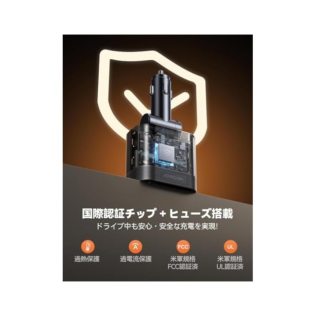 【安心と信頼できる多重保護システム】国際認証チップと10A交換可能なヒューズを内蔵します。さらに、過熱防止、過電流防止、短絡保護、低電圧保護の4つの安全機能を搭載します。ドライブ中も安心して充電が可能です。スペアヒューズ付属のため、緊急時も迅速に対応可能!冷却通気口の設計により、長時間使用しても過熱を抑え、安全性を徹底追求します。