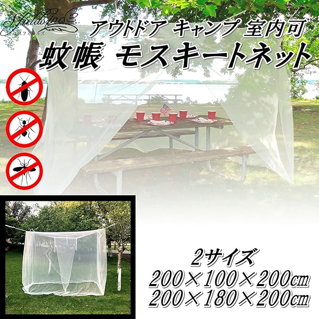 商品名:S.fields.inc モスキートネット 蚊帳 かや 吊り下げ アウトドア キャンプ 2サイズ (200×180×200)