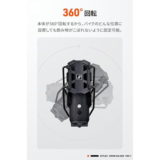 ドリンクホルダー本体が360°回転し、ボトル位置は自由自在に固定可能