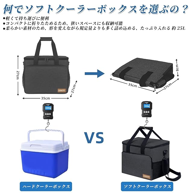 <b>容量と収納性</b> 大容量:25L という大容量を備えており、多くの物を収納できるので、キャンプやピクニック、買い物など様々なシーンで便利です。 折り畳み収納可能:使用しない時には折り畳んでコンパクトに収納できるため、スペースを取らずに保管できます。<br> <b>保冷・保温機能</b> 保冷と保温:保冷や保温が可能で、冷えた飲み物や食べ物を長時間保冷したり、温かいものを保温したりすることができます。 3 層断熱:3 層の断熱構造を持つことで、優れた保冷・保温性能を発揮します。<br> <b>耐久性と使いやすさ</b> 防水:防水性があるので、雨や水に触れても中身が濡れる心配がありません。 耐摩耗:摩耗に強い素材で作られているため、長期間の使用に耐えられます。 軽量:軽量なので、持ち運びが容易で、手持ちや肩掛けで持つことができます。<br> <b>用途の幅広さ</b> キャンプ、釣り、BBQ、ピクニック、運動会、お花見、部活や日常の買い物など、多様なアウトドアや生活シーンで大活躍するとされています。 このようなクーラーボックス(バッグ)は、アウトドア愛好者や日常的にお出かけをする人にとって、とても便利なアイテムとなります。