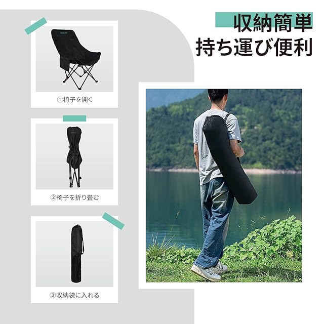 ALONJOY キャンプ用ラウンジャー リクライニング キャンプ 椅子 三段階調整 軽量 アウトドア チェア 折りたたみ椅子 お釣り 昼寝 居眠り 背もたれ高い 枕付き 収納袋2枚付き