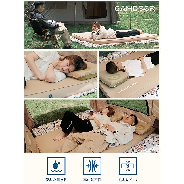 CAMDOOR キャンプ マット エアーマット ダブル 厚手 10cm 【90秒自動膨張・ソフトな手触り】インフレーターマット 自動膨張 キャンパー 車中泊 キャンプ用品 防水防潮 防災 安全無臭 四季使用可能 インフレータブルバッグと収納バッグ付属 持ち運び便利 簡単収納