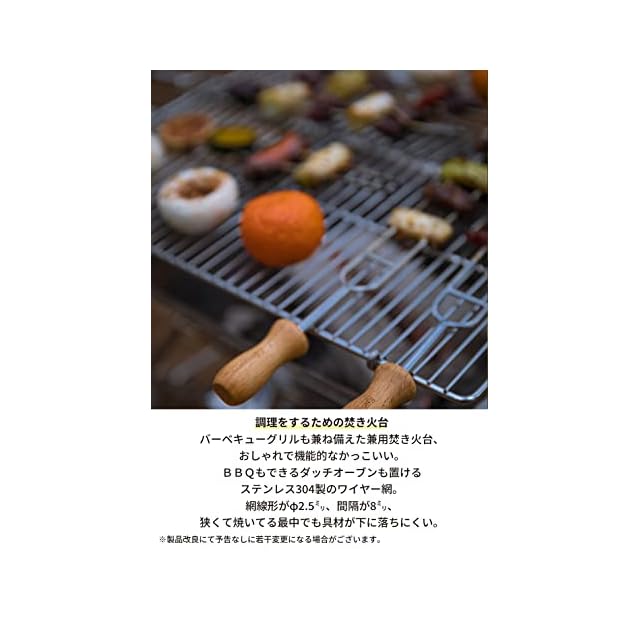 特徴:オールステンレス製で錆びにくく長寿命。すべての素材がステンレスで、網の上で簡単な料理ができるほど丈夫!