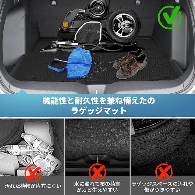 【車種別専用設計】職人技で作られており、細部まで抜群なフィット感。雨降りで足元が濡れていても気にせずに乗り込め、機能性と心遊びを兼ね備えたのラゲッジマット。【楽々取り付け】ワンタッチで簡単に載せるだけでOKです。軽くて女性でも一人で楽々に取付できます。