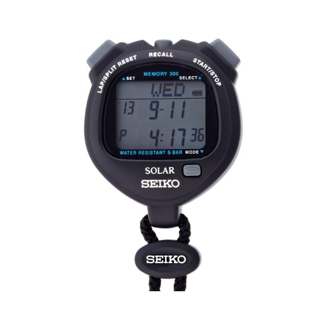 ストップウォッチ機能:二段表示(ラップ/スプリット・トータルタイム/ランニングラップタイム)、最大300本シングルメモリー(計測中も呼出可能)、ランニングラップ(現在計測中のラップ)タイムの表示が可能、ラップ/スプリット回数表示(最大999・