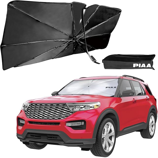 PIAA(ピア) 車内用品 サンシェード 1個入 L ブラック 折りたたみ傘タイプ EACS-L 遮光率/UVカット率_99.99% 遮熱効果最大-20℃ オリジナル収納袋付き