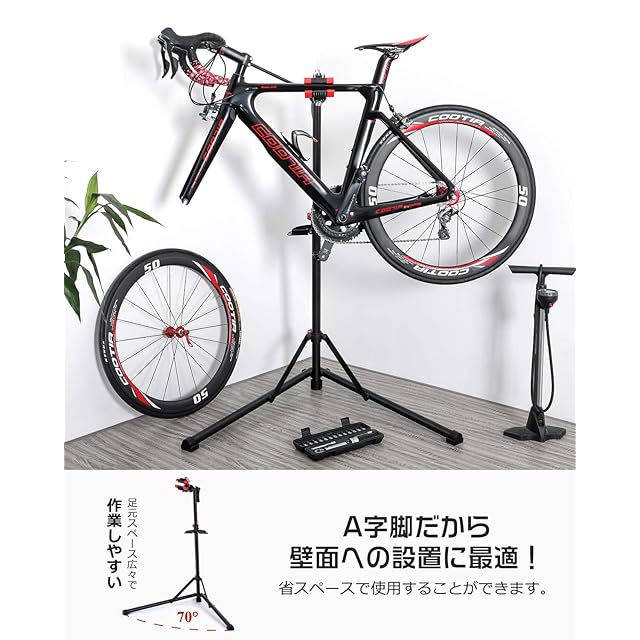 商品名:CXWXC 自転車 メンテナンススタンド ワークスタンド ロードバイク スチール製 高さ/角度調節可 折りたたみ式 ディスプレイスタンド 工具トレー/ハンドル支えバー付 ブラック(CX-C10BK)