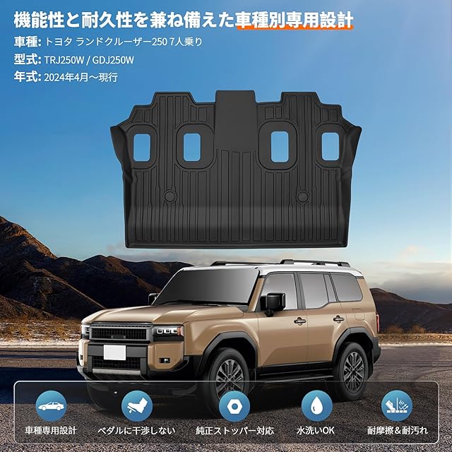 商品名:新型 ランドクルーザー250系 7人乗り フロアマット 車種専用設計 立体 3列目用 Land Cruiser250 TRJ250W GDJ250W 専用 TPE素材 カーマット 滑り防止 耐汚れ 3D 取付簡単 カー用品 立体構造 耐摩擦 防水マット カスタムパーツ インテリア 保護パーツ 1pセット(ランドクルーザー250 7人乗り 3列目-フロアマット)