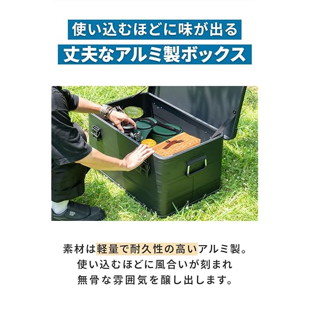 ✅【ロースタイルにぴったり】アルミ製天板は熱に強く、水や油も簡単に拭き取ることができます。テーブルとしてもおすすめ。オシャレなデザインはお部屋にも馴染みます。ローテーブルや収納ボックスとして、雑貨や衣類、工具入れにも最適です。・天板フタはバックルでしっかり固定・別売の錠前を使用すればロックも可能・内蔵されたバネによりガタつきを抑えた持ち手・天板はベルトで固定され開いた状態を保てます・同サイズでスタッキング可能・スタッキング時のズレ防止にも便利なコーナーガード・縁のクッション材でフタ開閉時の衝撃を緩和