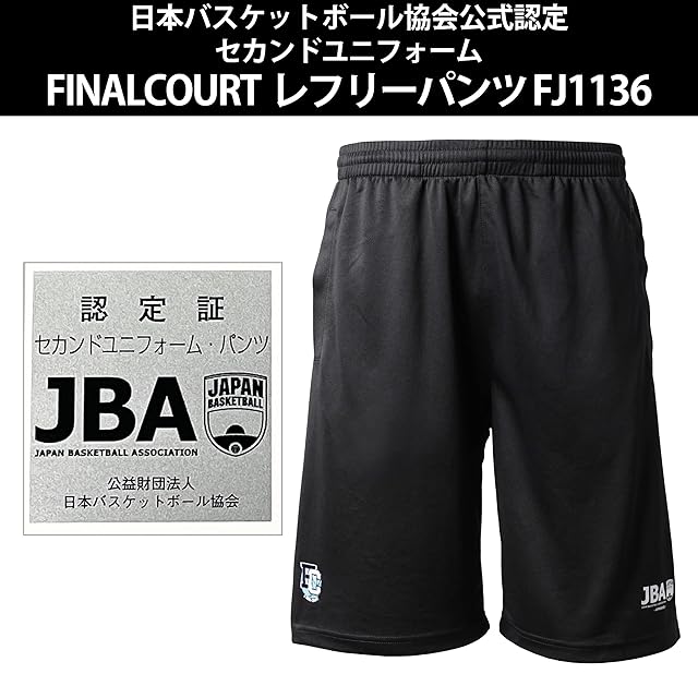<b>日本バスケットボール協会公式認定審判レフェリーウェア セカンドユニフォーム<br> FINALCOURT ファイナルコート バスケットボール ウェア レフリーハーフパンツ FJ1136</b><br><br> 日本発のバスケットボールブラント、FINALCOURTのレフェリー用ハーフパンツです。<br>JBA(日本バスケットボール協会)のセカンドユニフォームの公認を受けたウェアで、裾に公認ロゴのプリントと公式認定証のタグが付きます。<br>このため、公認セカンドユニフォームレフリーシャツとのセットアップで、一部のトップレベルを除く夏季の公式戦のレフェリングが可能です。<br>同じFINALCOURTのJBA公認レフェリーパンツ(セカンドユニフォーム)とのセットアップでのご購入をお勧めします。<br>吸汗速乾性があり、適度にストレッチする軽量素材を使用して快適な着心地をキープします。<br><br> ※レフェリーウエアセカンドユニフォームを公式戦でご使用の場合には、使用可能な期間、公式戦等について、日本バスケットボール協会発行の「2020バスケットボール競技規則」でご確認ください。 2020年から運用されている新ルールですので、以前のルールブックには記載がありません。<br><br> 【カラー】ブラック1色<br> 【サイズ】メンズ全5サイズ S、M、L、O、XO<br> 【素材】ポリエステル100% 吸汗速乾素材<br> 【機能】腰紐、両サイドポケット<br> 【原産国】中国<br><br> 【仕上がり寸法(cm)】<br> S:総丈49、股上28、股下21<br> M:総丈51、股上29、股下22<br> L:総丈53、股上30、股下23<br> O:総丈55、股上31、股下24<br> XO:総丈57、股上32、股下25<br><br> <b>【適合サイズ(cm)】</b><br> S:身長162-168、胸囲80-88、胴囲66-74<br> M:身長167-173、胸囲88-96、胴囲74-82<br> L:身長172-178、胸囲92-100、胴囲78-86<br> O:身長177-183、胸囲96-104、胴囲82-90<br> XO:身長182-188、胸囲100-108、胴囲86-94