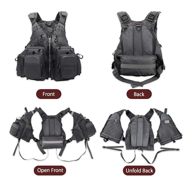 Xblack フィッシングベスト フローティングベスト ライフジャケット メッシュベスト カメラマン ジャケット グレー 反射ベルト付き 大人式 調節可能 浮き力材取り外し可 95kgまでの負荷力 撮影用 多機能