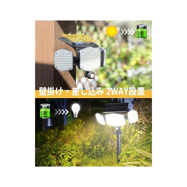 ※【2WAY設置の人感センサーライト】センサーライトの壁掛けだけ仕様から進化し、土に埋め込み可能になるガーデンライトです。✅壁にも取付簡単ですから、女性とお年寄りも気軽に使えます。人感センサーが搭載され、人や車の動きを感知するとソーラーライトは高輝度で点灯します。防犯ライトとして、防犯効果も抜群です!