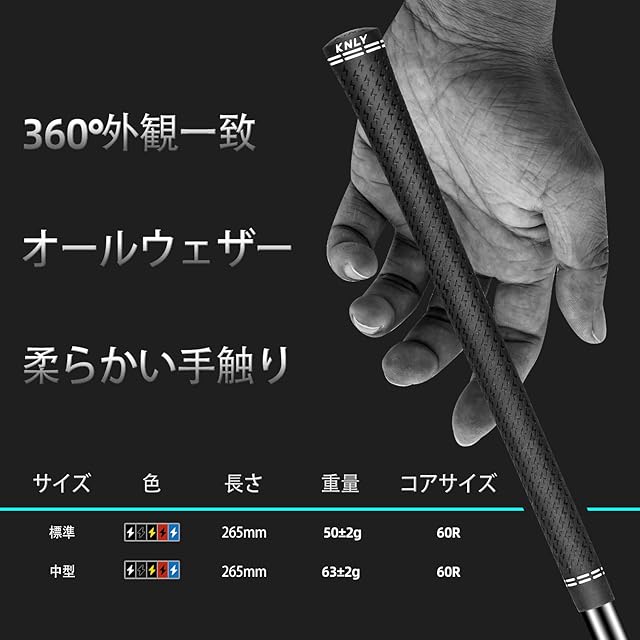 商品名:KNLYゴルフクリップ13セットは、全天候型で性能滑り止めのゴルフクラブグリップであり、360のライトニングパターンがデザインされ、標準/中型のサイズがあり、5色から選択できます (標準, 黒)