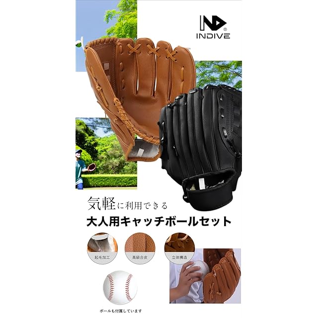 商品名:INDIVE グローブセット 大人用 グローブ2つ 野球ボール付き 12.5インチ 右投げ 野球ソフトボール
