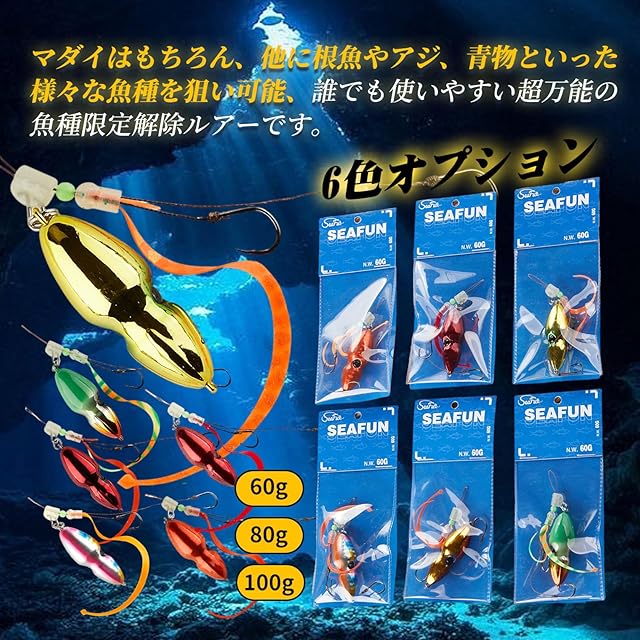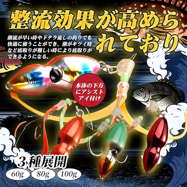 60g・80g・100g ウェイト3種展開、水深や潮の流れに合わせて使い分けてください。