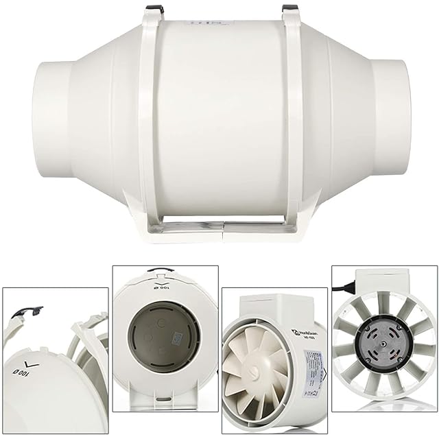 Hon&Guan ダクトファン 100mm 強力 省エネ 静音 【インボイス制度登録店】 ダクト用換気扇 塗装ブース用 家焼肉 中間取付 丸形タイプ 産業用換気扇 (HF-100P/φ100mm)