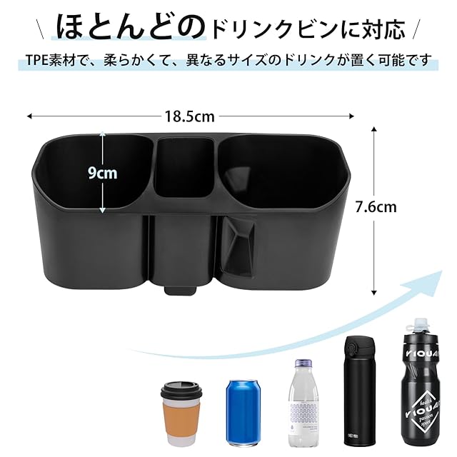 4.【簡単に取付】:本製品の底面は両面テープを付属しておりますので、装着前、その両面テープを剥がしてから、センターコンソールのドリンクホルダーに差し込むだけで簡単な取付で、違和感も無く便利です。その固定性も良いです。