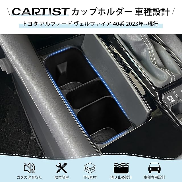 商品名:Cartist トヨタ アルファード ヴェルファイア 40系 カップホルダー 最新型 TPE素材 Alphard Vellfire 4代目 2023年~現行 衝撃吸収 コンソールトレー ドリンクホルダーカバー アンチスキッド センターコンソール 専用設計 収納ケース アクセサリー 内装 カーパーツ (トヨタ アルファード ヴェルファイア 40系)
