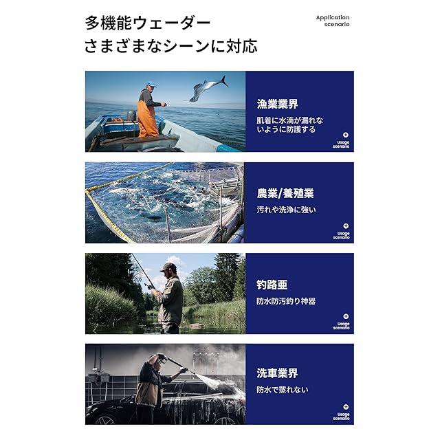 使いやすさ重視:簡単に着脱可能なデザインで、フィッシングウェーダーとして漁業や災害時の活動に便利です。