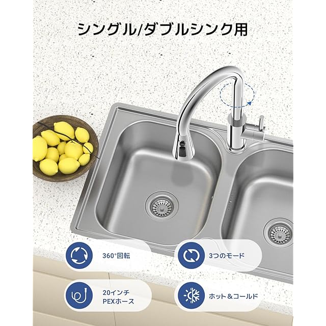 耐久性があり、新品のように長持ち:高品質のセラミックスバルブは、耐高温、耐腐食性で、長期間滴漏れせず、冷水・熱水が調整可能です。精密なメッキ加工を施した表面は、指紋や油汚れを防ぎ、お手入れの負担を軽減します