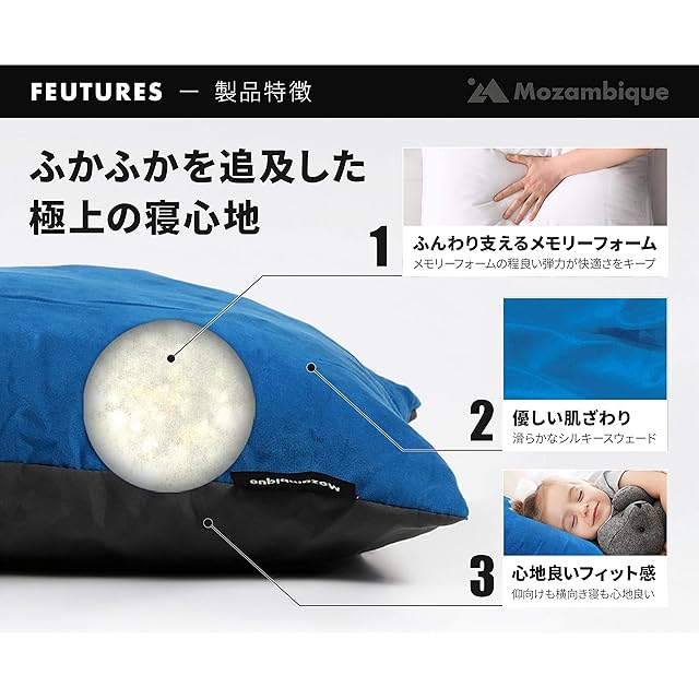 商品名:Mozambique(モザンビーク) キャンプ 枕 ピロー トラベルピロー 携帯枕 アウトドア コンパクト 車中泊【プレミアムな寝心地を追求したキャンプ枕】 (Sサイズ, ブルー)