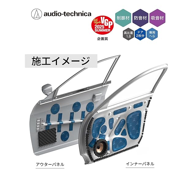 商品名:オーディオテクニカ AT-AQ405 ドアチューニング キット デッドニングキット ドア2枚分 制振 防音 遮音 吸音 専門工具不要 専用へら付き