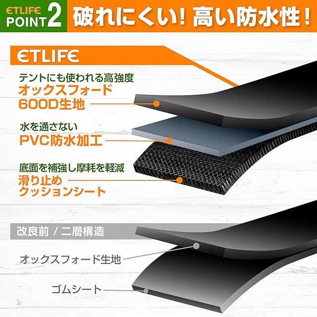 ✅ 破れにくく高い防水性: 高耐久の素材です。お荷物をよく出し入れしマットを擦る可能性の高い配送業車様や、ペットのドライブシートとしても安心してお使いいただけます。PVC素材を含むため素材特有の匂いはございますが、第三者機関よりペットや人体に有害な「ホルムアルデヒド」は1歳以上の幼児に安全な基準をクリアしております。