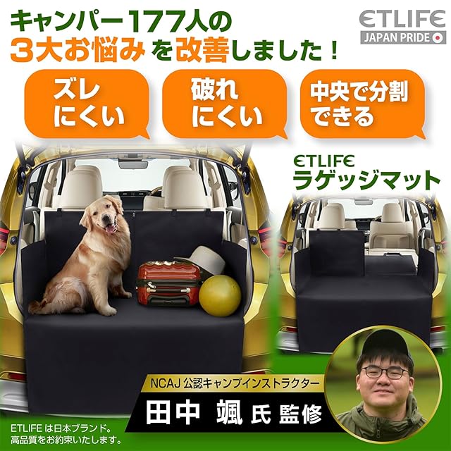 商品名:ETLIFE ラゲッジマット 汎用 【 中央分割!滑り止めでズレない!キャンプインストラクター監修】 ラゲッジシート トランクマット トランクシート 車 マット トランク シート 荷台マット 犬 ペット 車 ドライブシート (標準サイズ 155*105*34cm)
