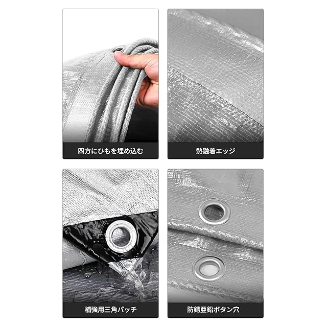 多用途で便利なハトメ付き 四隅にハトメ(金具)を標準装備。ロープや結束バンドで簡単に固定可能で、屋根シート・テント・荷物カバーなど様々なシーンで活用できます。