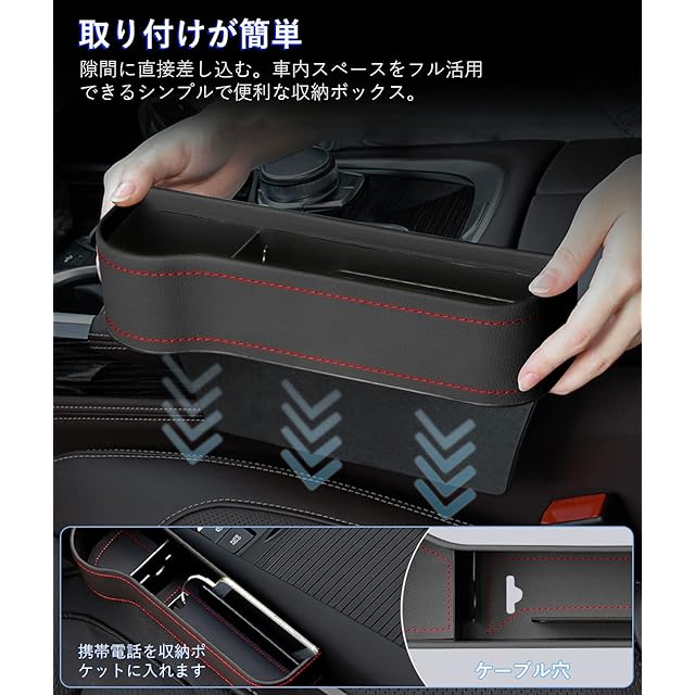商品名:カーシート隙間収納ボックス 車用 サイド収納ボックス 大容量 PU製 シートサイドポケット 便利なカー用品 携帯電話 飲み物 現金 カード 鍵 リモコンの車 小物入れの収納 ドリンクホルダー付き 直径6.5cm以内ペットボトルを入れ 座席 隙間 用 差し込みタイプ の車用 収納ケース 運転席と助手席セット 小物収納 コンソールボックス