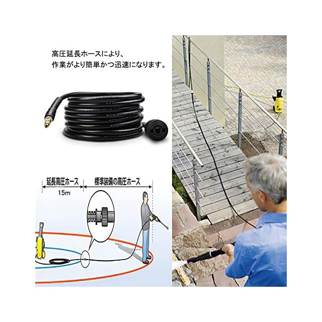 DERASLケルヒャー用 高圧洗浄機用アクセサリー延長高圧ホース15m (クイックコネクト機種用) K2 K3 K4 K5 K6 K7