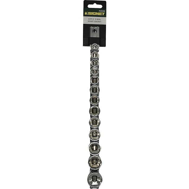 SIGNET(シグネット) 全長22mmの超短型で狭所作業もお任せ! 3/8DR 13個組 ショート6角ソケットセット ミラー仕上げ ホルダー付 12133