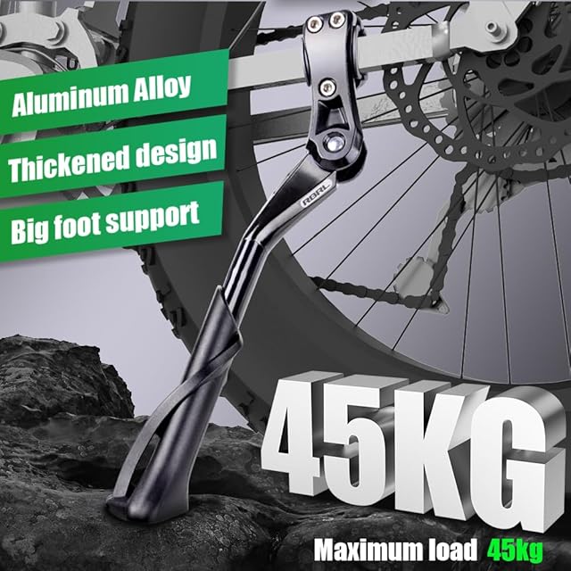 【安定性と耐久性】自転車 キックスタンドの本体は非常に強力なアルミニウム合金で作られており、錆びにくく、揺れにくく、変形しにくいです。強風や不整地でも自転車は安全です。頑丈な構造により信頼性の高いグリップが確保され、バイクを常に安全に駐車できることがされます。