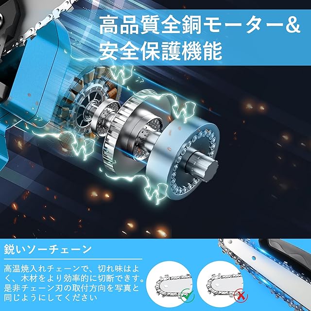 ✅【高切断力の充電式チェーンソー】この充電式チェーンソーを強力な純銅モーターを搭載、良質なガイドチェーン(深さ焼入れ処理)を採用し、最大2500r/分の高速回転したチェーンソーはわずか15秒で直径 150mmの丸太を切断できて、純銅はより速く加熱され、時間とエネルギーを大幅に節約できます。木材の切断、竹の切断、薪作り、庭木の枝の剪定など作業に最適しています。