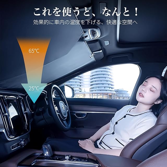【高品質素材で優れた断熱効果】高精密合金素材の回転軸を使用し、自動収納を実現。6層の高密度高分子断熱材料と高密度オックスフォード生地により、直射光線を99%遮断。太陽光を効果的に反射し、車内の温度を大幅に下げ、快適な環境を提供します。車 サンシェードが暗くなりプライバシーも守られます。