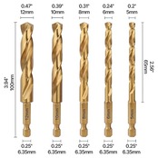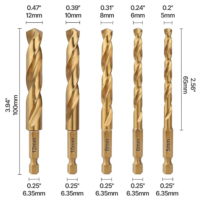 Vearter 5本組鉄工用ドリル 刃ビットセット 5/6/8/10/12mm 六角軸 高速度鋼 M2 電動ドリルビット 掘削工具 穴あけツール ステンレス鋼 合金 金属 プラスチック 木工用
