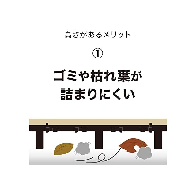 高さがあるからいつもの掃除が楽らく清潔。ゴミや枯れ葉が詰まりにくい。排水がスムーズで掃除がしやすい。防虫剤の設置が可能で害虫対策ができる。
