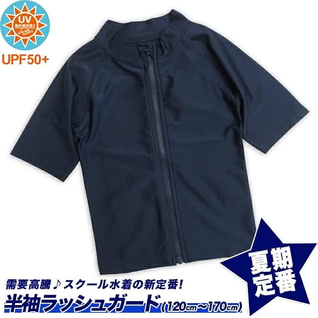 商品名:[アッシュベリー] キッズスクール水着 男女兼用半袖ラッシュガード(前ファスナー) [UPF50+紫外線対策加工] 130cm(855497)