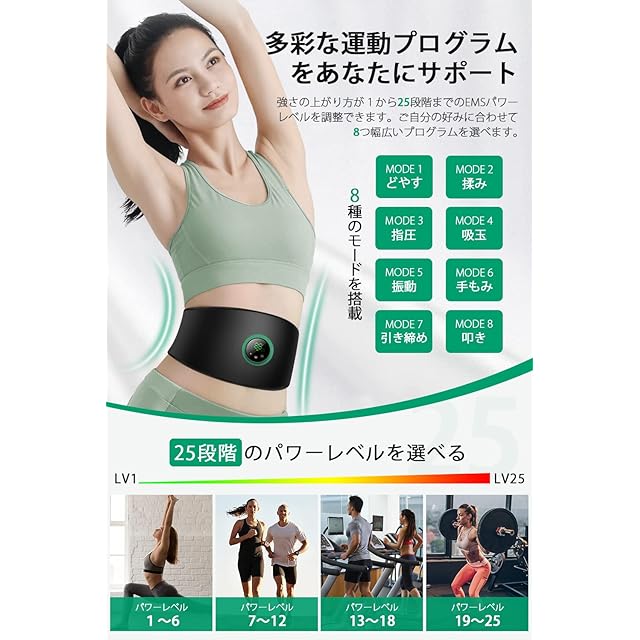 【進化版の8種類日本語モード&25段階強度】モード8種類、目的に合わせて強さを25段階で調整可能です。20分間自動オフ機能が搭載されるので時間をお気になる必要がありません。腹筋ベルトで20分の運動量はジョッキング2000m、自由泳40分、腹筋鍛え40分にあたります。初心者にも女性にも、特にサラリーマンや運動不足の方にも需求に満足し、簡単にトレーニングできる理想な鍛錬器具です。 .