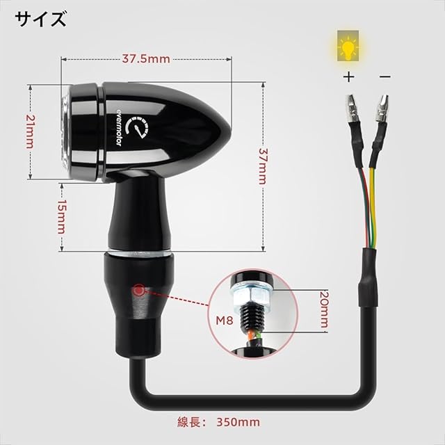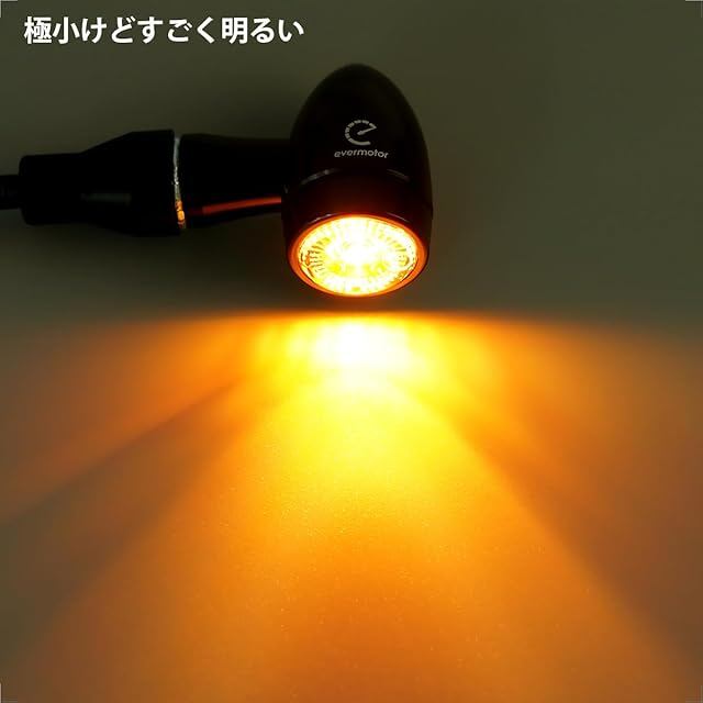Evermotor バイク ウインカー LED 小型 弾丸 黒 eマーク CNC 防水 アルミニウム合金 IP67 方向指示器