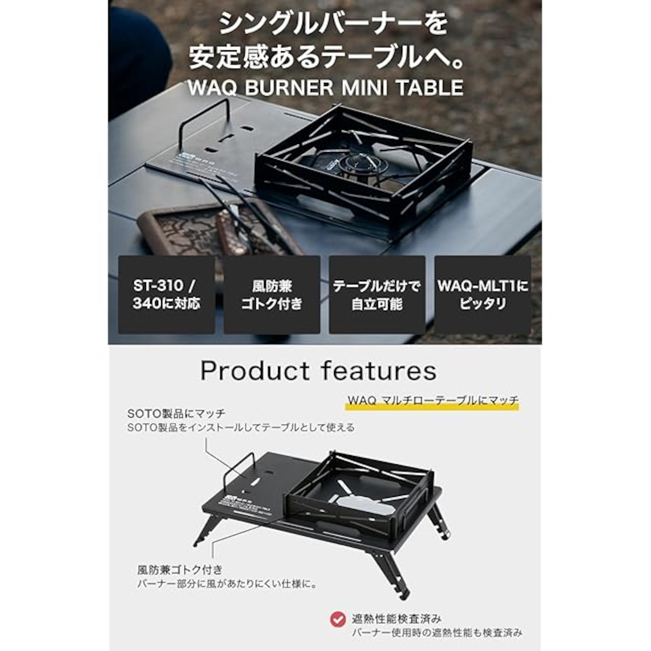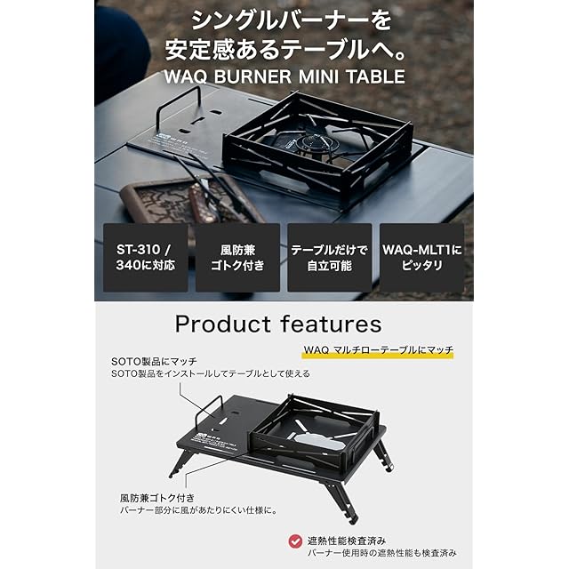 【WAQ BURNER MINI TABLE】・SOTO社製ST-310 / 340に対応・風防兼ゴトク付き・IGT規格対応で、テーブル上のごちゃつきを解消しスタイリッシュに。