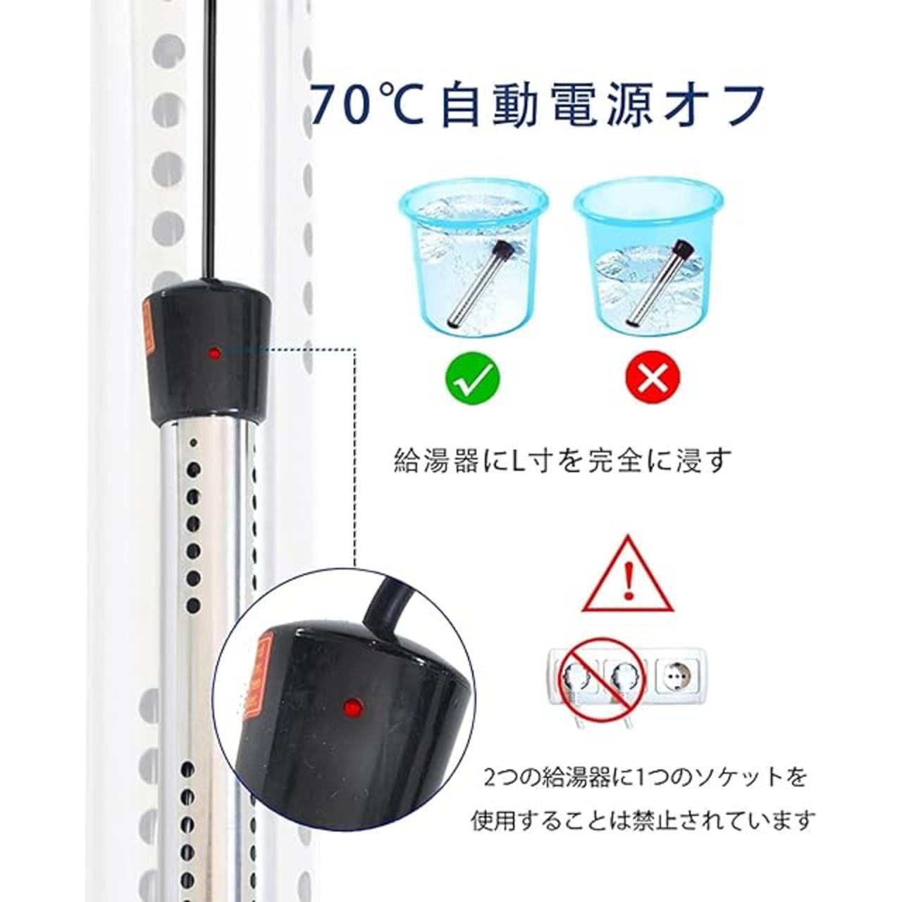 商品名:投げ込みヒーター プールヒーター 1500W ポータブルバケットヒーター 液浸ヒーター 浸水給湯器 浸漬湯沸かし器 自動電源オフ 浴槽用給湯器 インフレータブルプール 家庭 アウトドア 学校に適しています