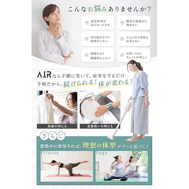 ✅【家事トレ革命】ジムでハードに鍛えることが全てではありません。自分が出来ることから始めたら大丈夫なんです。AIRは普段の家事に+αするだけ。水にも強くあらゆる家事をしながらご使用可能です。新感覚ながら運動で理想のカラダを手に入れる第一歩を踏み出しましょう。