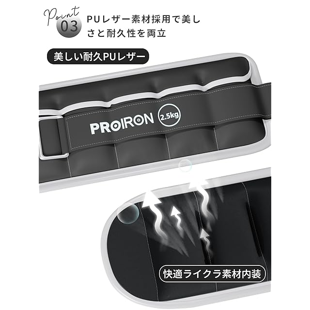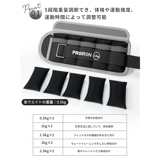 PROIRON アジャスタブル・リスト/アンクル・ウエイト-2.5kg×2(ブラック)
