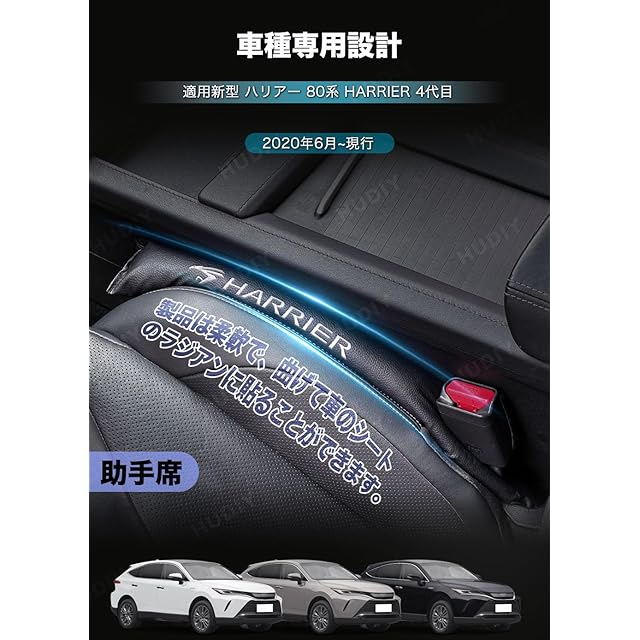 商品名:HUDIY(フーディ)シート隙間埋めクッション 新型ハリアー80系(2020年6月~現行) 刺繍 車用 シートサイド隙間埋め スボーツ式 運転席 助手席 ゴミ小物類 落下防止 プリントロゴ入り小物入れ 2本セット