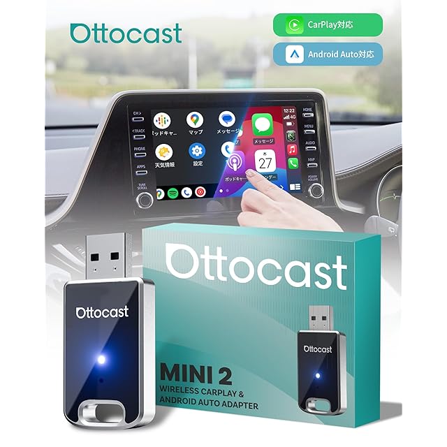 【公式】オットキャスト MINI ミニ CarPlay Android Auto ワイヤレスUSBカーアダプター Ottocast 新型 2025 カープレイ&アンドロイドオート無線化接続 純正有線CarPlay Android Auto搭載車適合 iPhone&Androidスマホ用 カーアクセサリー ナビ 音楽 ハンズフリー通話 メッセージ受送信対応 小型 接続簡単【技適認証取得済み】