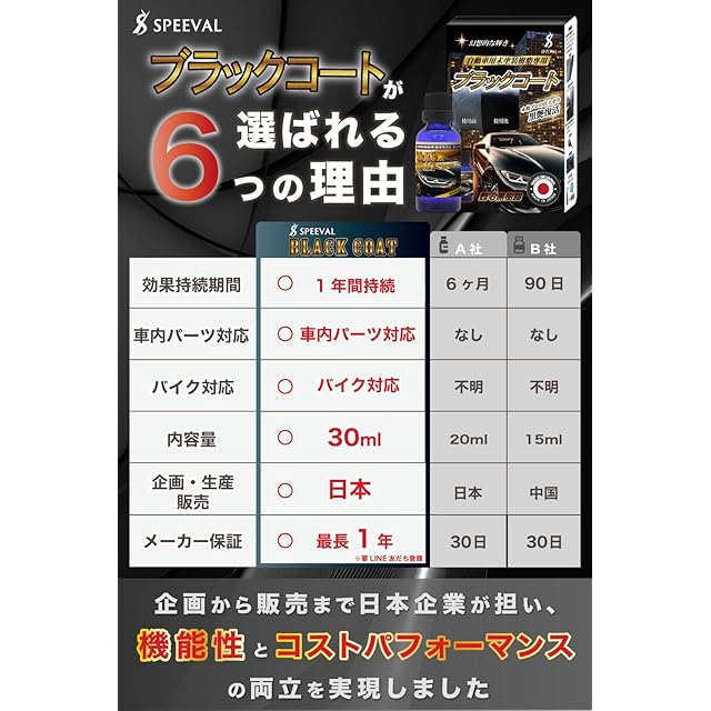 商品名:SPEEVAL 黒樹脂復活コーティング剤 30ml ブラックコート 未塗装樹脂 劣化防止 樹脂復活剤 車 バイク 1年間 超耐久 超撥水