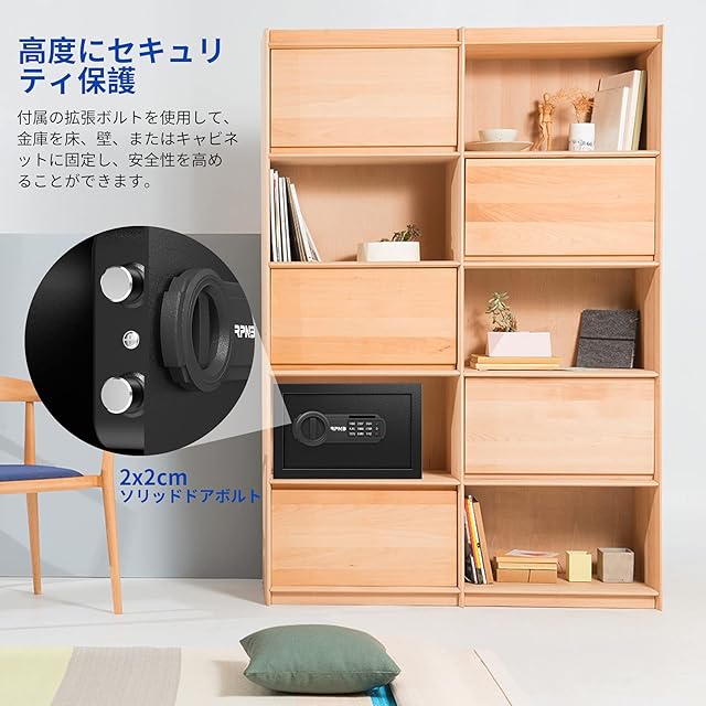 RPNB 金庫 家庭用 小型 電子金庫 保管庫 防犯セーフ デジタルキーボード 緊急キーでロック解除 現金 宝飾品 貴重品 A4ファイル収納ケース 床・壁に固定可能 家庭 事務所 旅館 店に適し 日本語マニュアル付き 8.5L