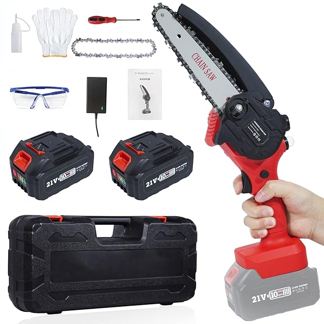 高い安全性:チェーンソー 充電式本体には制御回路基板と過負荷保護機能が内蔵されており、モーターが過熱するとチェーンソーは自動的にモーターを停止します。電動チェーンソーの使用寿命を延長いたします(注意:充電式チェーンソーは20分休憩すると継続的に使用できる)アップグレードされた「自動給油」設定により、小型チェーンソーの切断がスムーズになり、チェーンが引っかかなくなります。人間工学的な滑り止め設計により、グリップ部分は手にフィットします、また安全ロックにより電気チェーンソーの予期せぬ起動を防止できます(チェーンソーを開くには2つの異なるボタンを押して使用する必要があります)。効果的な通風と放熱設計はモーターの焼損を防止し、電池に電力を供給するミニチェーンソーの動作をより安全で安定させます。また90°バッフル設計とゴーグルにより、作業中に木くずや屑が目や顔に入らないようにすることができます。手袋も付属しております。