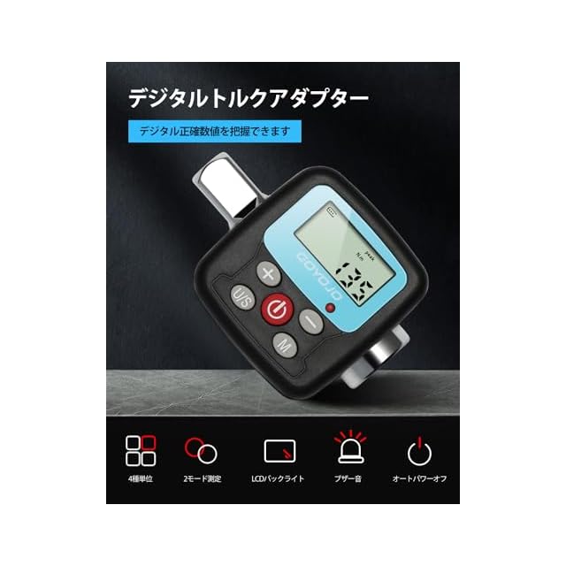 商品名:GOYOJO デジタルトルクメーター 高精度右±2% /左±2.5 デジタルトルクアダプター 2モード、4 単位 耐久性 多用途 1/2" 1/4" 3/8"アダプター、自動車、バイク、自転車、オートバイ DIY 日本語説明書付き 測定範囲4-135N.m